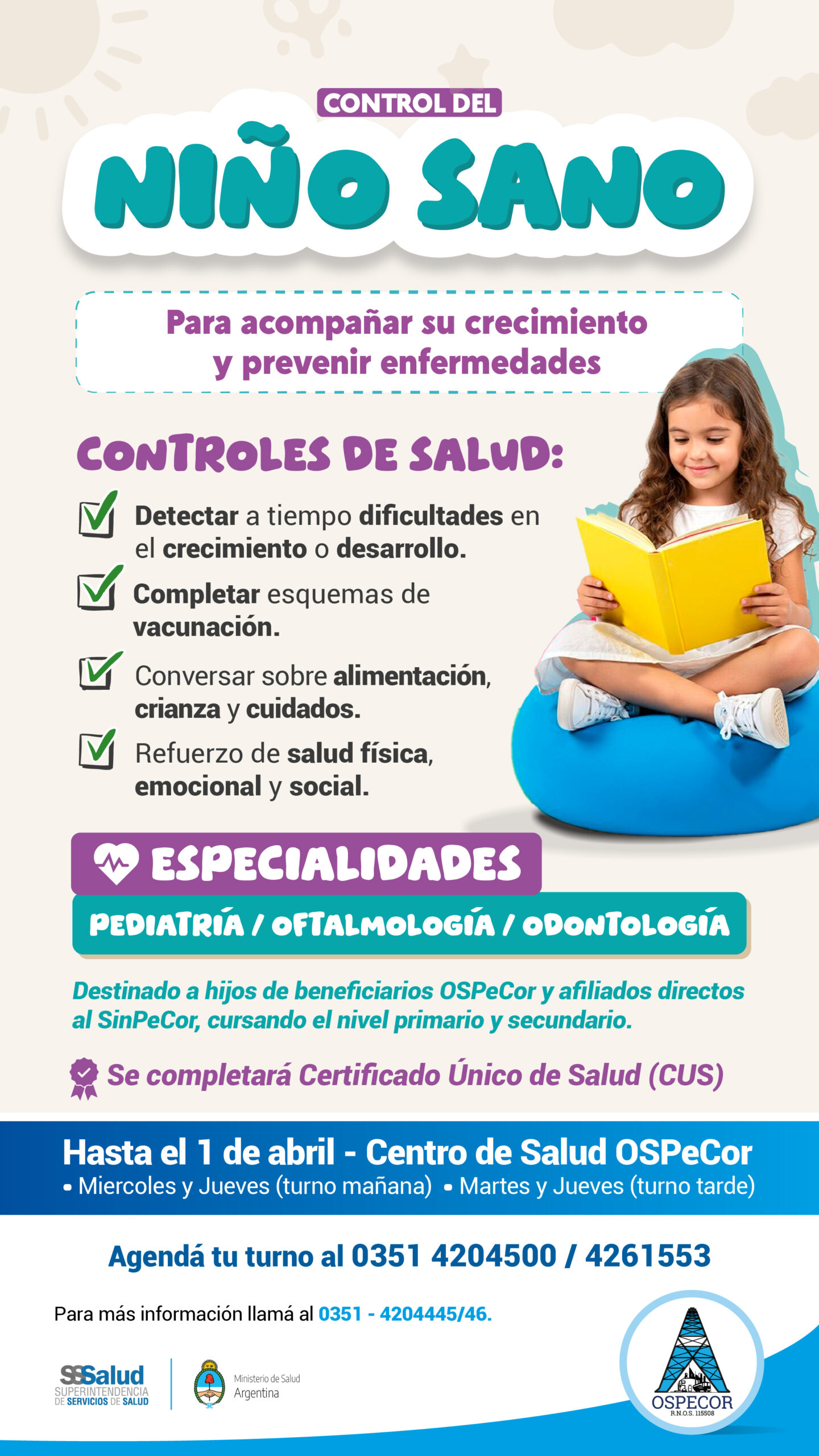 Destinado a hijos de beneficiarios OSPeCor y afiliados directos al SinPeCor, cursando el nivel primario y secundario.