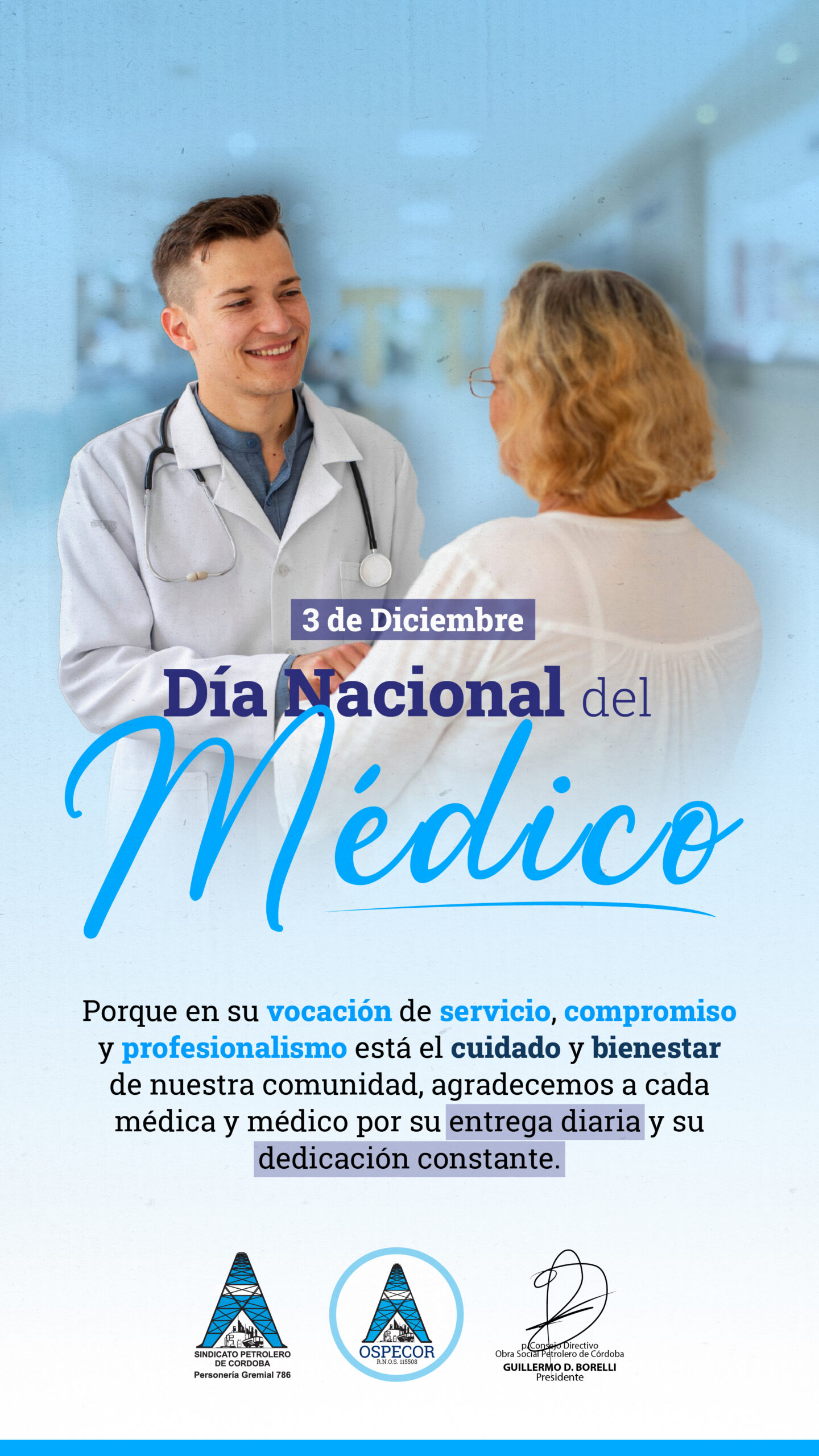 Saludamos a los profesionales de nuestro Centro Médico OSPeCor y de toda la provincia, por su compromiso con la vida y el cuidado de la salud