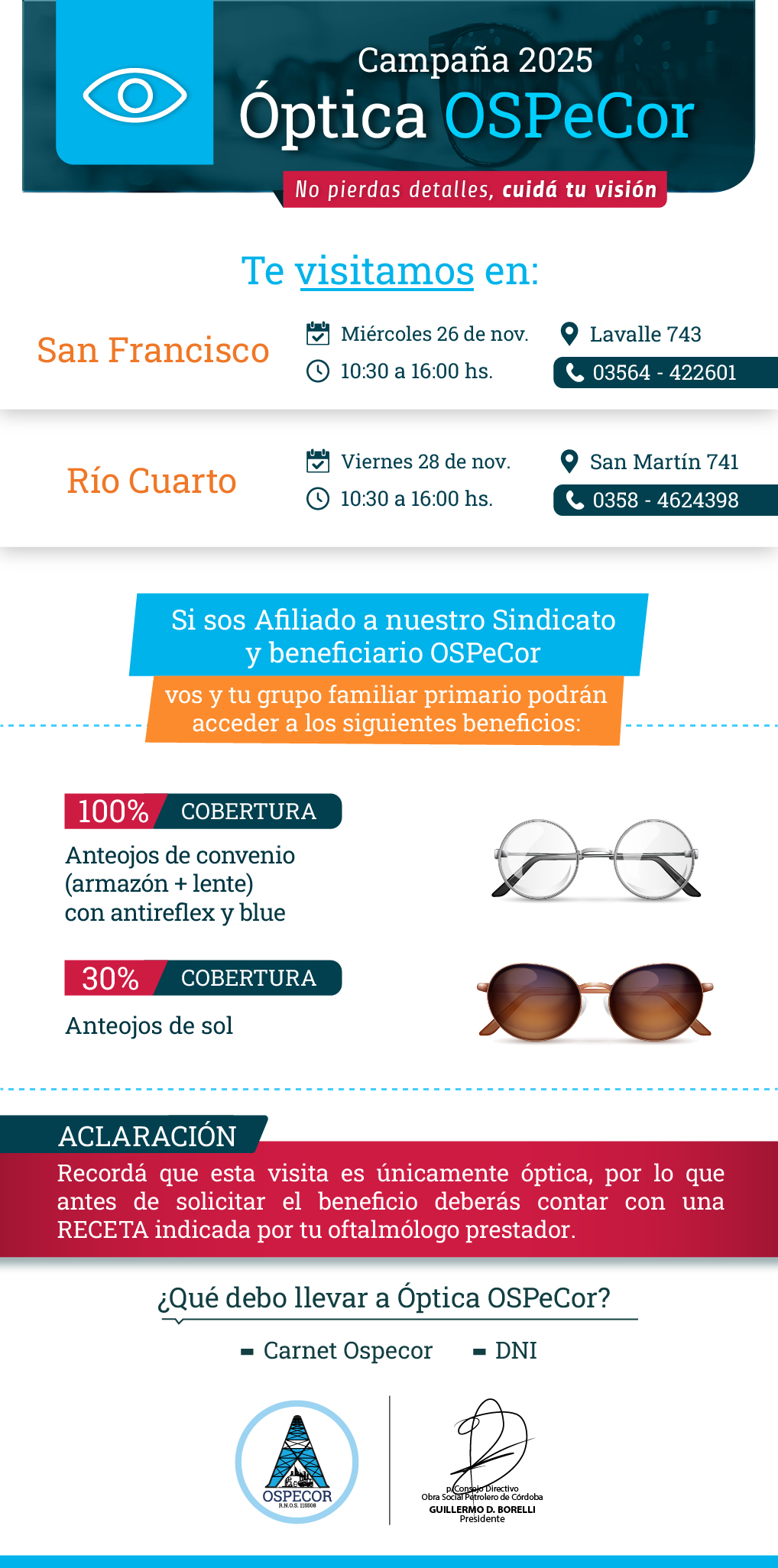 NUEVO CONVENIO EN ÓPTICA OSPECOR